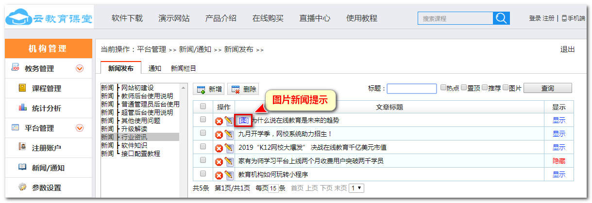 第一步:平台管理----新闻/通知----新闻发布----选择相应的新闻栏目,新增即可,如下图