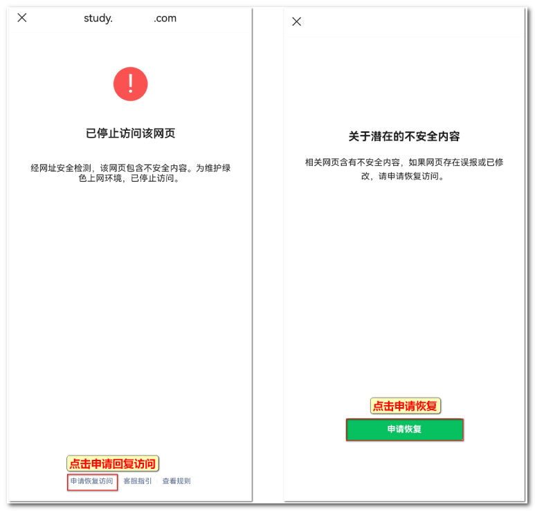 二、申请恢复访问的步骤