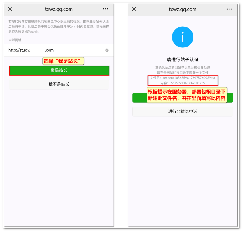 ②选择身份:选择“我是站长”,上传认证文件。